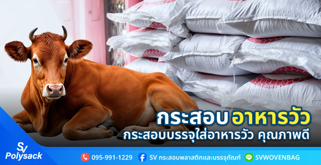 หากต้องการสั่งซื้อกระสอบอาหารวัวคุณภาพดี ราคาประหยัด ติดต่อสอบถามหรือสั่งซื้อได้ที่ SVpolysack โรงงานผลิตกระสอบพลาสติก ขายกระสอบพลาสติกราคาถูก ผลิตได้มากกว่า 2 ล้านชิ้น/เดือน ทีมงานพร้อมให้คำปรึกษาฟรี ช่วยออกแบบกระสอบให้ตรงตามความต้องการ รับผลิตกระสอบพลาสติกทุกขนาด เลือกขนาดหน้ากว้างได้ตั้งแต่ 12-34 นิ้ว ระบบพิมพ์เฟล็กโซ่ งานดี คุณภาพเด่น คุ้มค่าแน่นอน