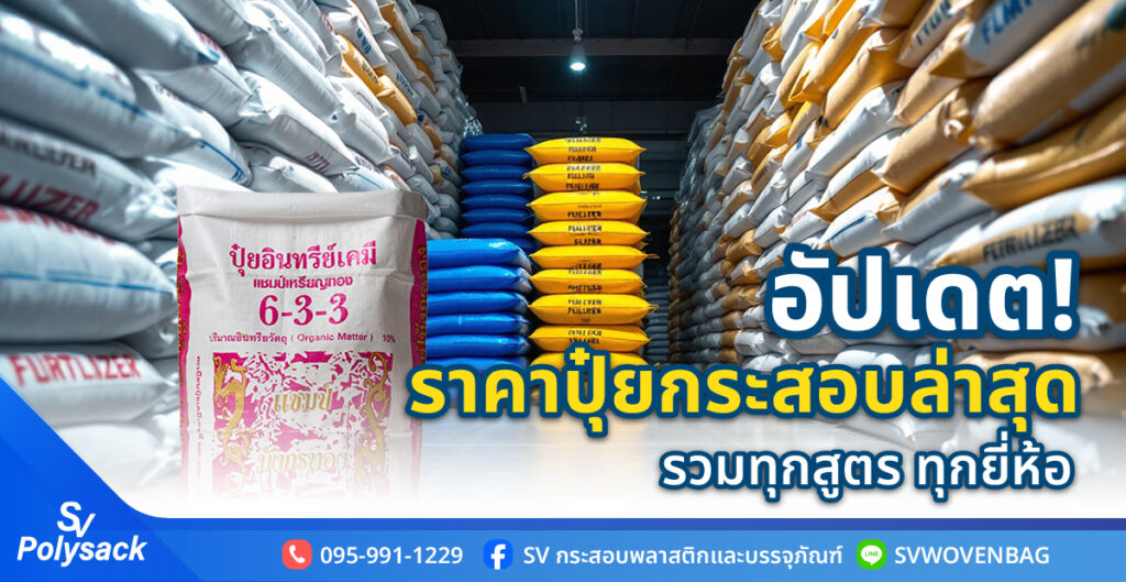 ปุ๋ยที่จำหน่ายตามท้องตลาด ปุ๋ยเม็ด ปุ๋ยเคมี มักใช้บรรจุภัณฑ์กระสอบพลาสติกทอสาน เพราะมีความเหนียว แข็งแรง ทนทานสูง ไม่ฉีกขาดง่าย ป้องกันความชื้นได้ดี ผู้ประกอบการหลายท่านจึงเลือกนำมาบรรจุใส่ปุ๋ย สำหรับท่านใดที่สนใจถุงกระสอบพลาสติก คุณภาพดี สามารถสั่งทำกระสอบปุ๋ยพิมพ์ลาย ออกแบบโลโก้ได้ตามต้องการ สั่งผลิตถุงกระสอบปุ๋ยได้ที่โรงงาน SV Polysack ผลิตกระสอบปุ๋ยราคาถูก เลือกขนาดได้ตามต้องการ ราคากระสอบปุ๋ยประหยัดต้นทุน ส่งตรงจากโรงงาน รองรับการผลิตได้มากถึง 2 ล้านชิ้น/เดือน มองหากระสอบปุ๋ยคุณภาพพรีเมี่ยมต้อง SV Polysack เท่านั้น